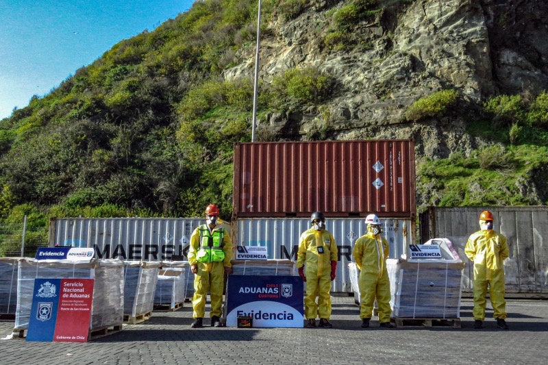Este procedimiento se realizó en el puerto de San Vicente, en la Región de Biobío, mediante un operativo táctico ejecutado por la Unidad de Drogas y Delitos Conexos de la Aduana Regional de Talcahuano y Directemar.