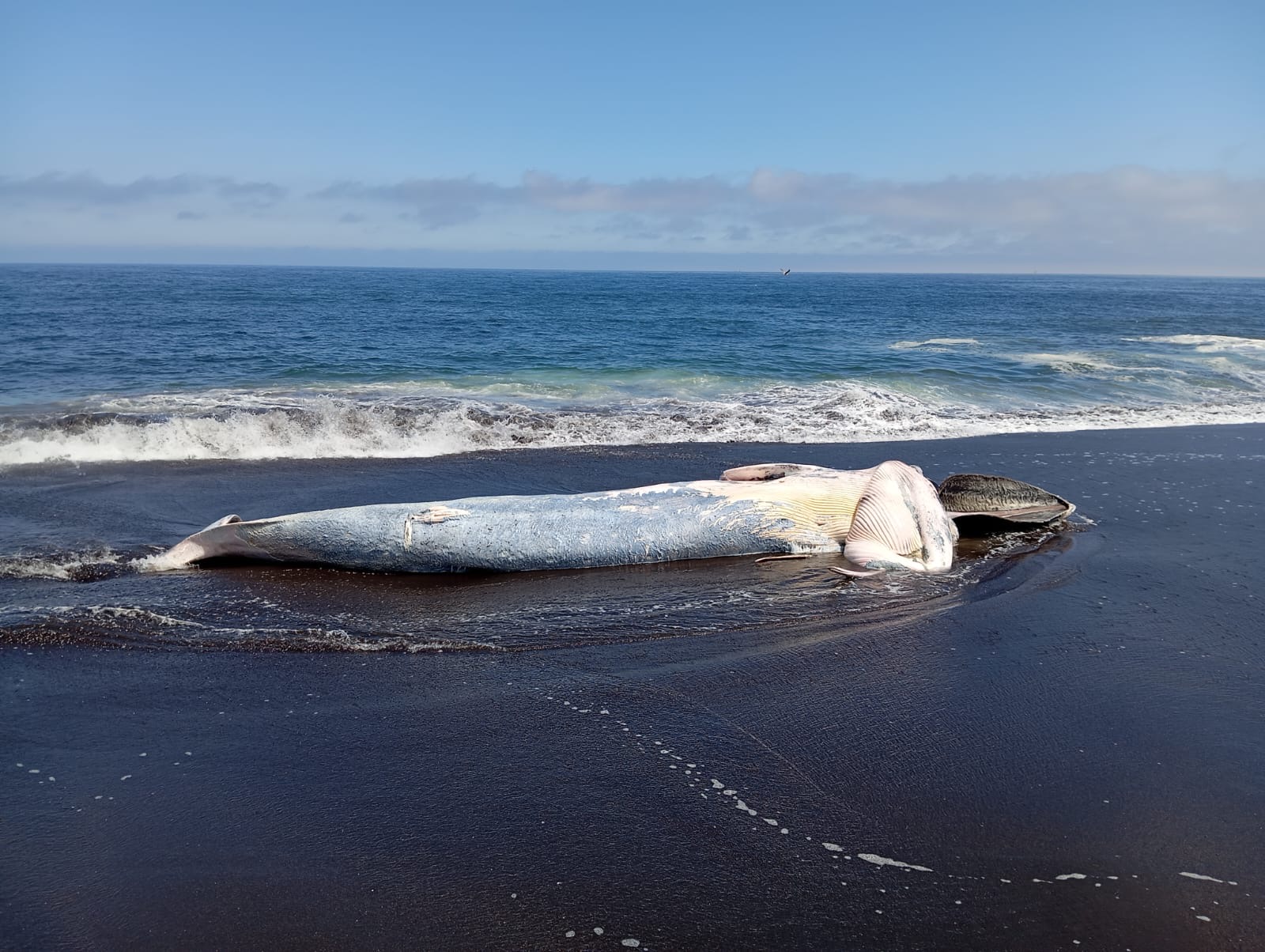 La directora Regional (s) de Sernapesca, Ana María Fernández, confirmó que el cuerpo corresponde a una ballena sei hembra que está en avanzado estado de descomposición.