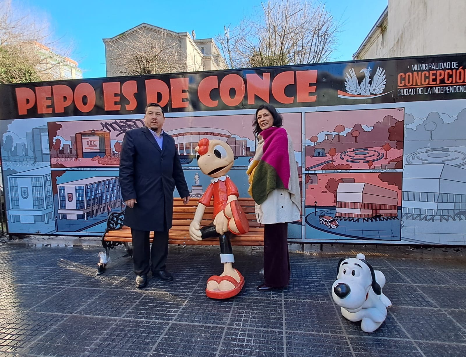 La directora de Serviu Biobío, María Luz Gajardo, junto al alcalde de Concepción, Héctor Muñoz, estuvieron presentes en la prueba de postura de la emblemática figura de Condorito, en el marco del proyecto “Rutas Peatonales de O’Higgins. La actividad tuvo como objetivo la verificación de los anclajes de la figura, lo que permitirá medir y mejorar la instalación en el espacio donde será emplazado esta figura de forma permanente.