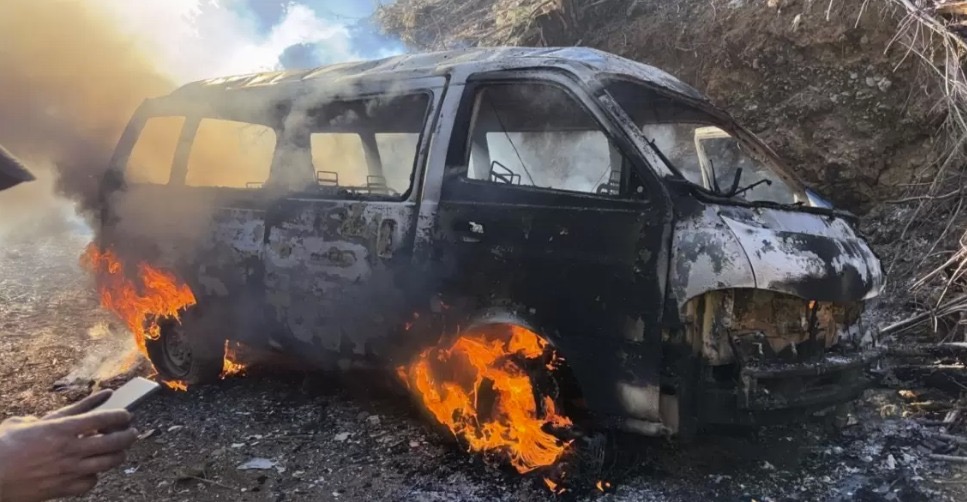 En el lugar, los antisociales amenazaron a trabajadores y también a profesores que iban transitando por una carretera mientras ellos ejecutaban este atentado en Contulmo.