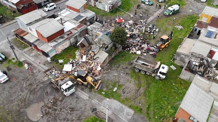 Personal de la Municipalidad de Hualpén y Carabineros desarrollaron un operativo para desalojar cuatro viviendas en el sector de Villa El Triángulo, momento en que fue encontrado el cuerpo de un hombre.