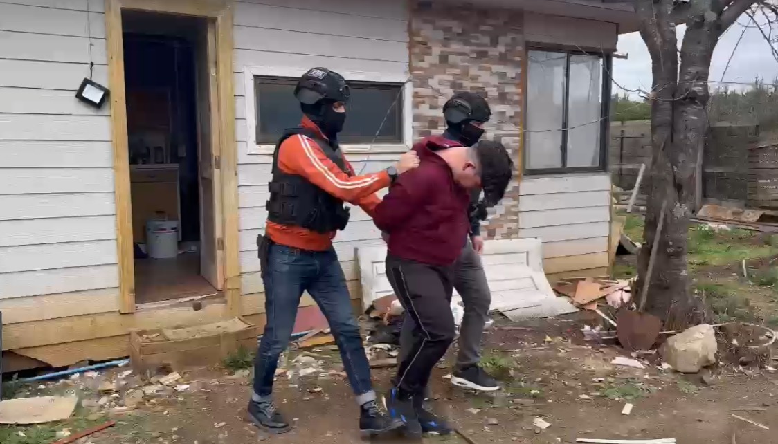 Según detallaron las autoridades, al aprehendido tiene cerca de 20 años y es conocido como “Crazy Nach”, quien fue encontrado por la policía civil oculto en el sector Pilmaiquén de la comuna de Los Álamos, en la provincia de Arauco, y en ella participaron al menos una de decena de funcionarios de la PDI, con apoyo de la Armada, ya que la zona se encuentra en Estado de Excepción.