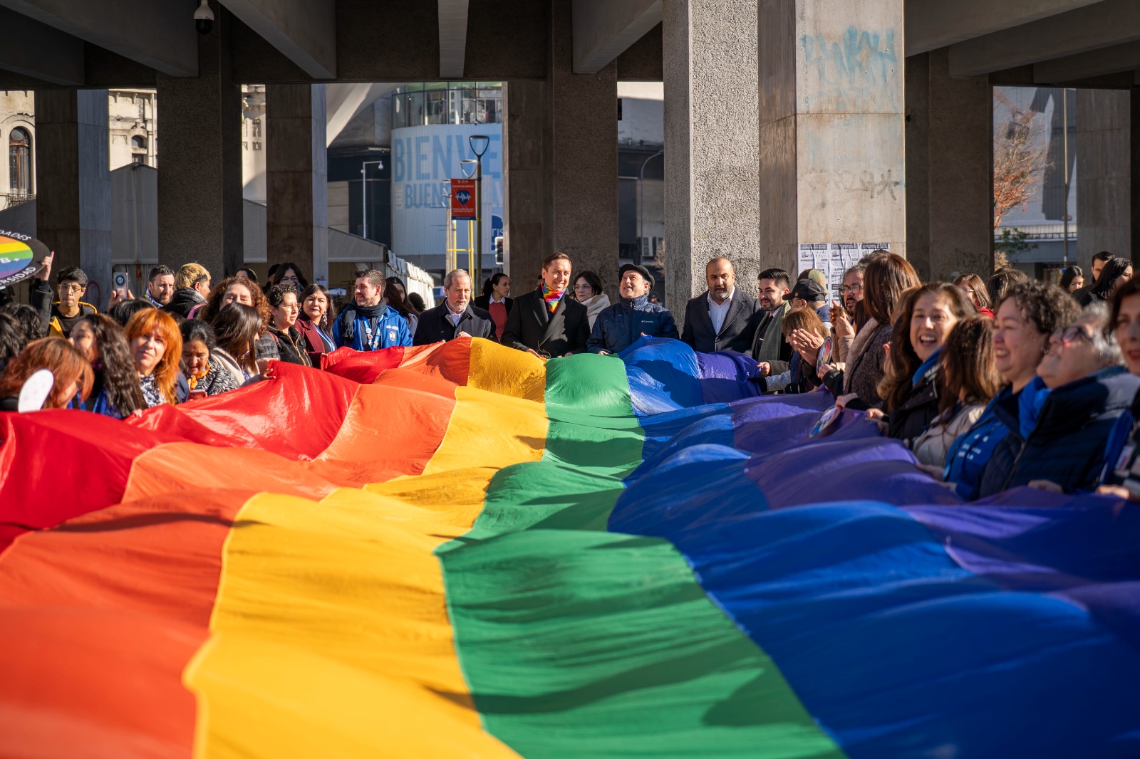 En el marco del Mes del Orgullo, autoridades regionales participaron en una actividad conmemorativa que se desarrolló a las afueras de los Tribunales de Justicia de Concepción, donde se desplegó la bandera del orgullo como símbolo del compromiso institucional con los derechos de las personas LGBTIQ+.