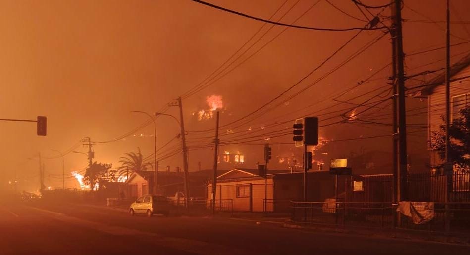Según los reportes entregados por el municipio penquista, en la comuna de Concepción ya se contabilizan más de 200 viviendas destruidas por el avance del fuego, cifra que se suma a las “decenas” de casas quemadas en Penco y Lirquén, donde barrios enteros han sido arrasados.
